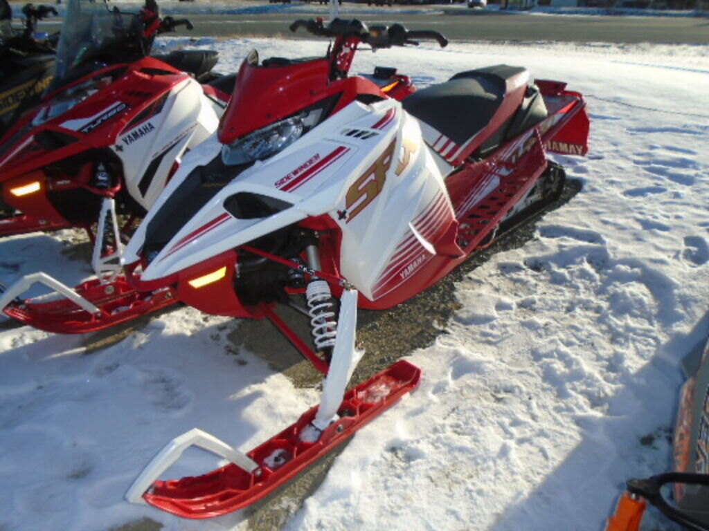 The Yamaha Sidewinder SRX LE is ready to defend its title as the world's fastest production snowmobile. With the heart of a Genesis 998 Turbo and specially calibrated iQS, electronically controlled suspension, the SRX is sure to get you to the end of the lake first! A low profile Ripsaw track minimizes drag while the race-bred, ARCS front suspension with longer, forged spindles, special lightweight upper A-arms and optimized geometry work to keep everything planted. In a throw-back to the glory days of Yamaha racing, the new SRX proudly sports a limited edition, retro, red / white paint scheme with gold accents.