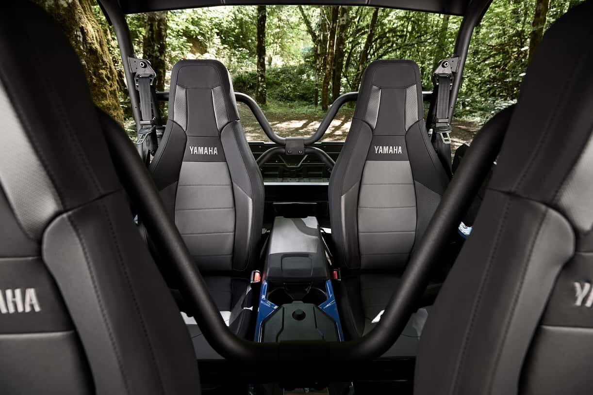 • The new Wolverine RMAX4 1000 Limited maximizes passenger comfort with full length rear doors and substantially more rear passenger space including an impressive 47% (7.5 inches) more forward leg room and 40% (5.8 inches) more side-to-side leg room when compared to previous RMAX4 models. There is also thicker, softer new knee pad material, smooth front seat backs, inset rear door speakers and new premium grab handles creating a plush, roomy interior for long days on the trail. seat belt for added comfort.